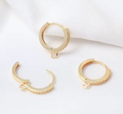 14K Real Gold Plated Huggie Hoop Rhinestones Earrings