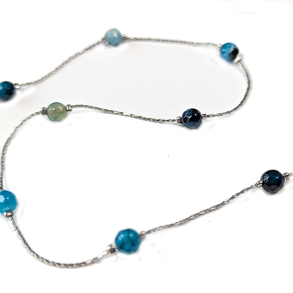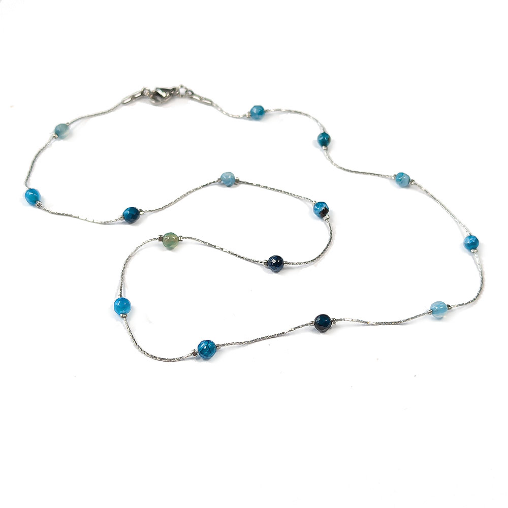 18K Gold Plated Stainless Steel Blue Gemstones Station Necklace