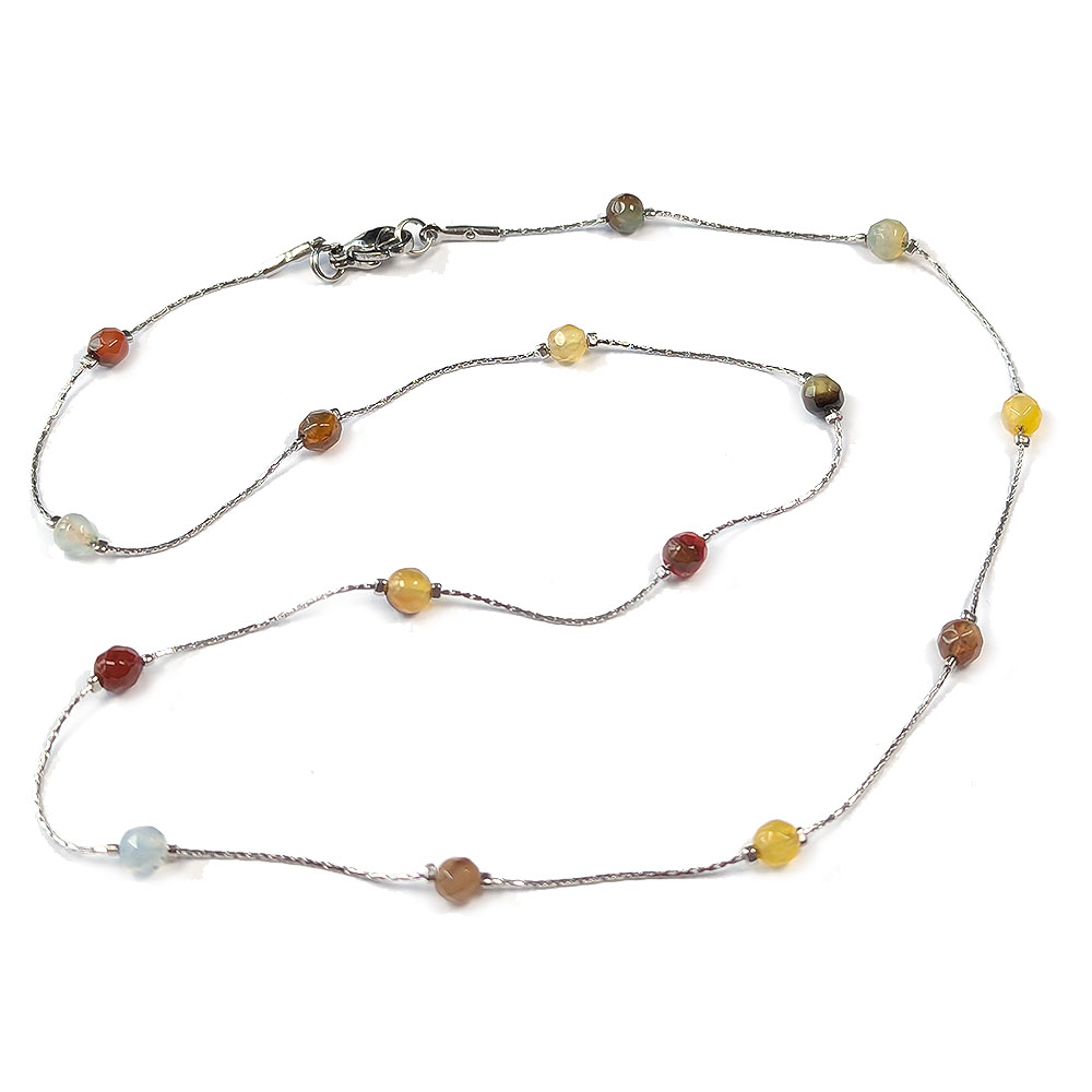 18K Gold Plated Stainless Steel Mixed Gemstones Station Necklace