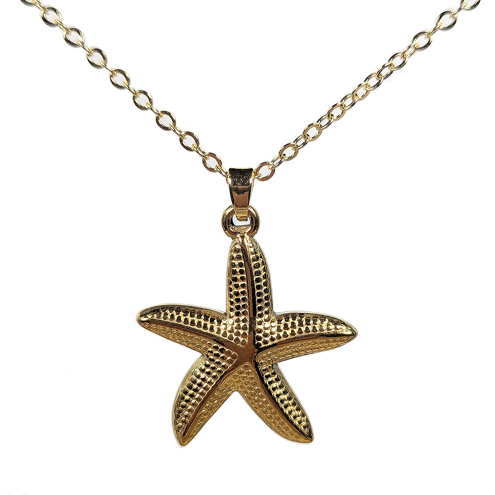 18K Real Gold Dipped Plated Stainless Steel Large Doubled Sided Starfish Necklace