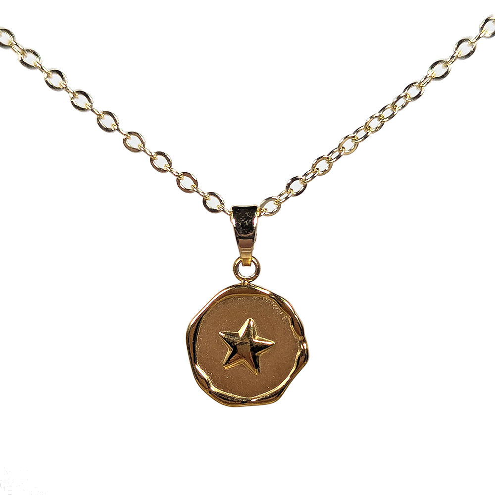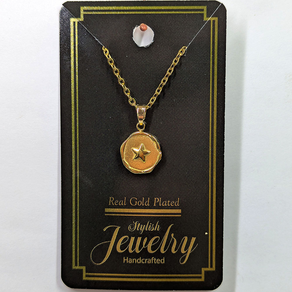 18K Real Gold Dipped Plated Stainless Steel Round Star Necklace