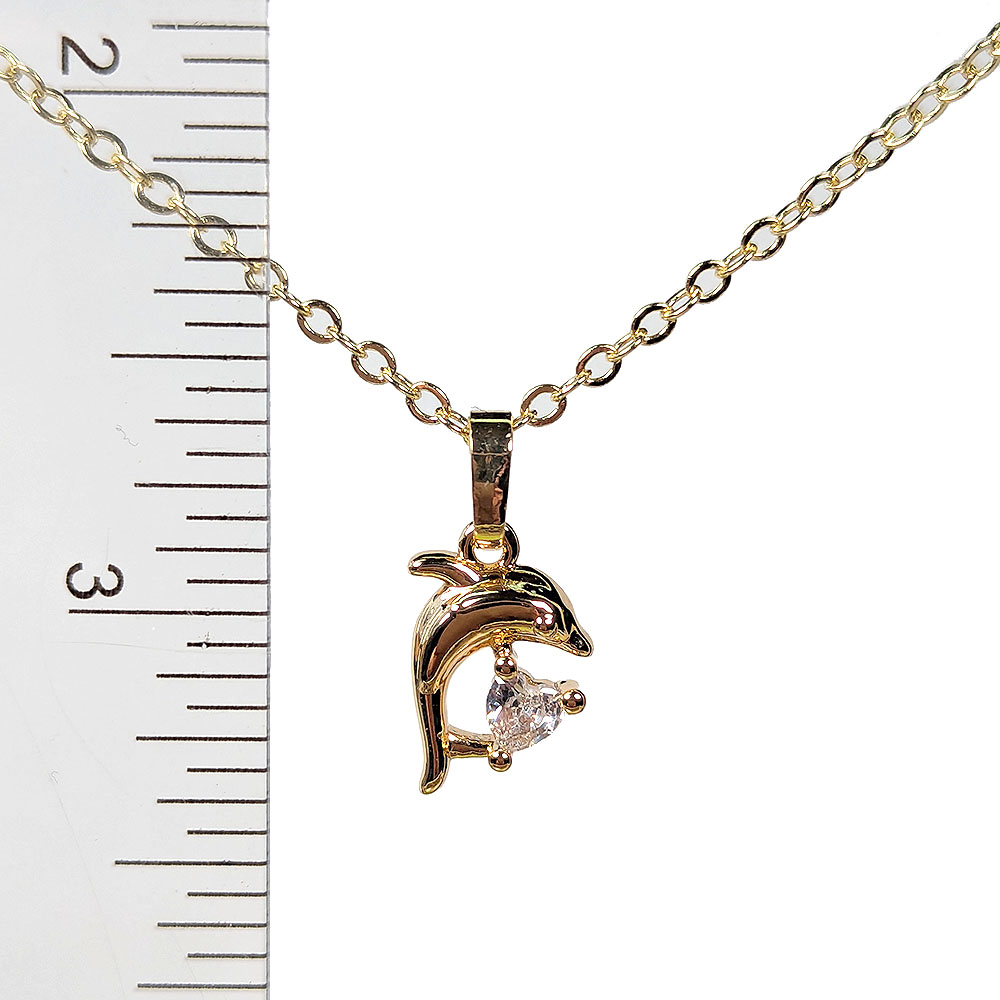 18K Real Gold Plated Dipped Rhinestone Dolphin Necklace