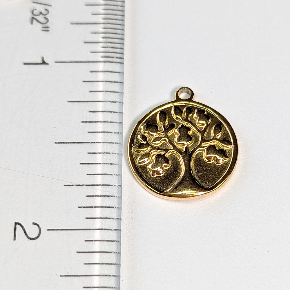 18k Real Gold Plated Stainless Steel Circle Tree Charm