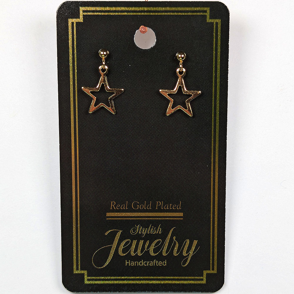 18K Real Gold Dipped Plated Stainless Steel Delicate Hollow Star Earrings