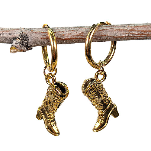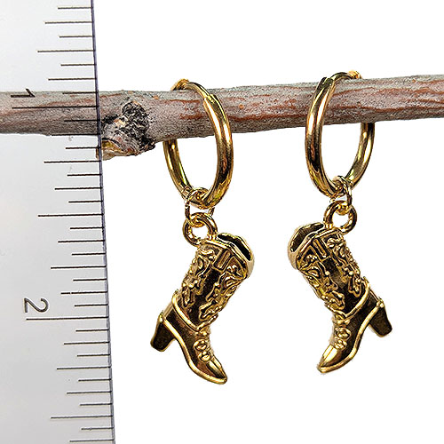 18k Real Gold Plated Stainless Steel Double Sided Cowboy Cowgirl Boot Huggie Hoop Earrings