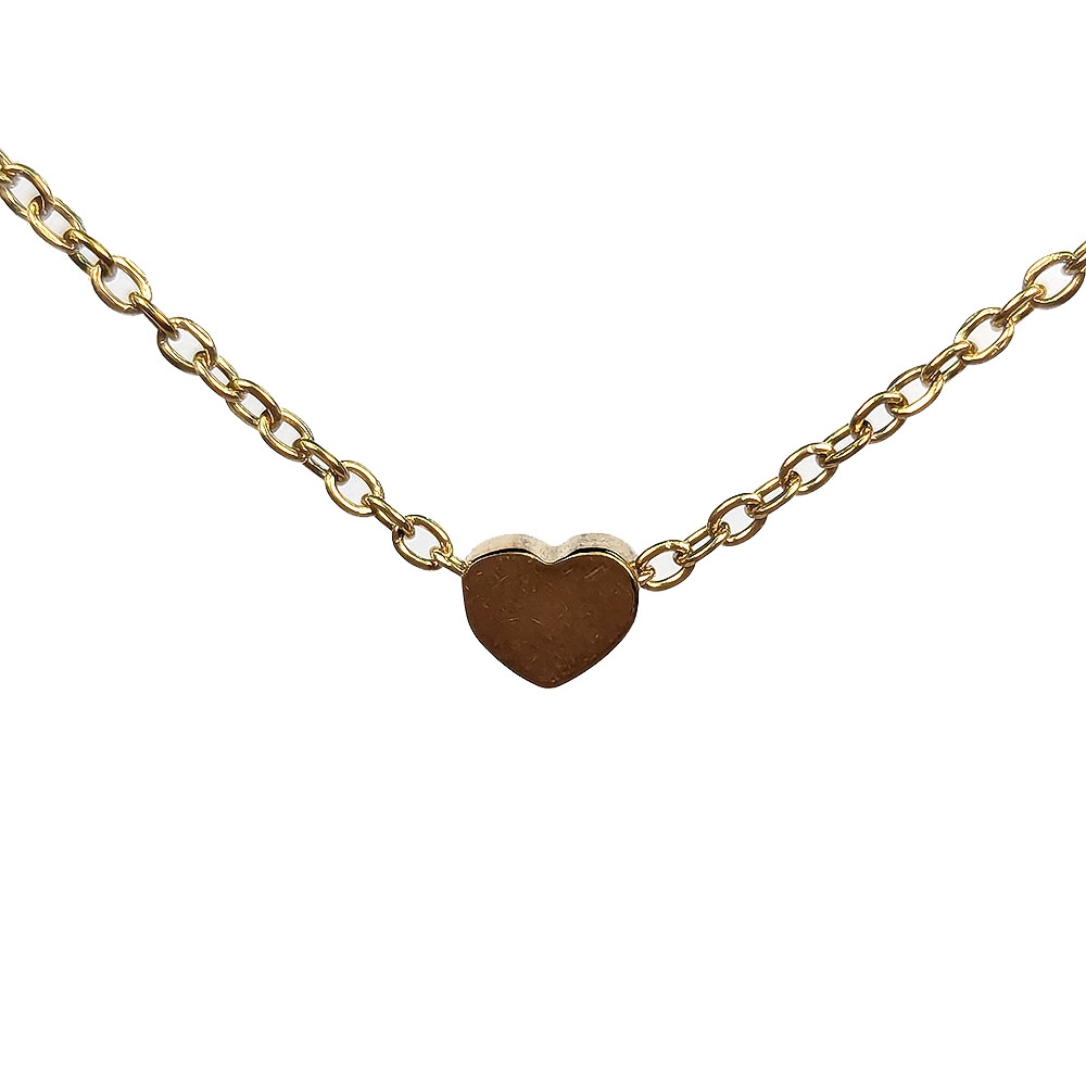 18K Real Gold Plated Stainless Steel Floating Heart Charm Bead Necklace