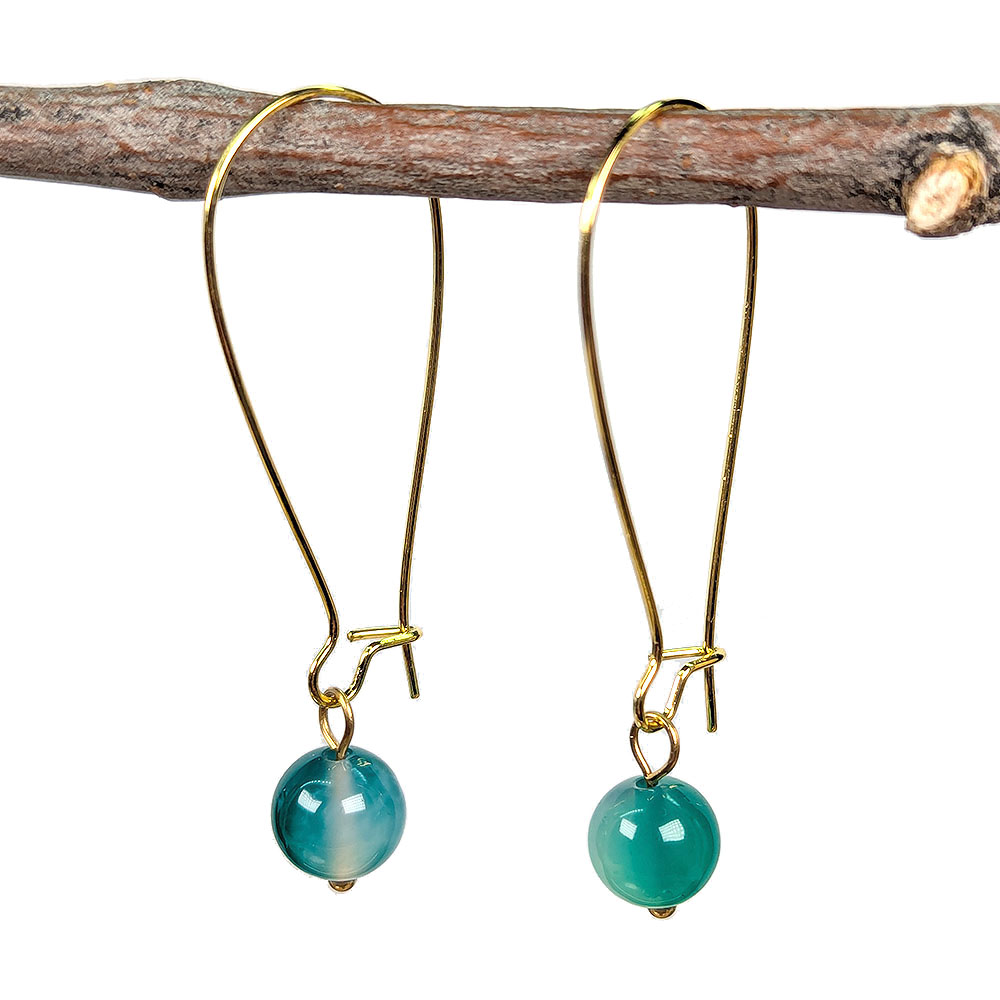 18K Real Gold Plated Stainless Steel Green Agate 8mm Gemstone Earrings