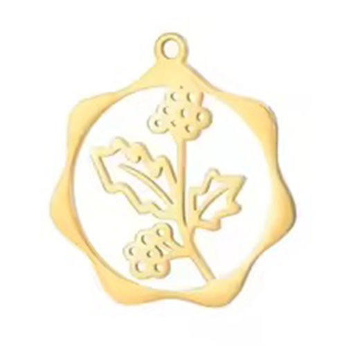 18k Real Gold Plated Stainless Steel Holly December Birthday Flower Hoop Charm