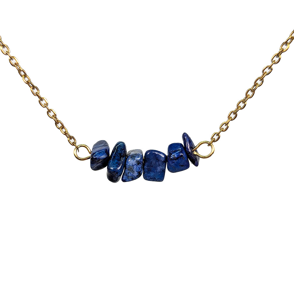18K Real Gold Plated Stainless Steel Lapis Lazuli Gemstone Chips Necklace