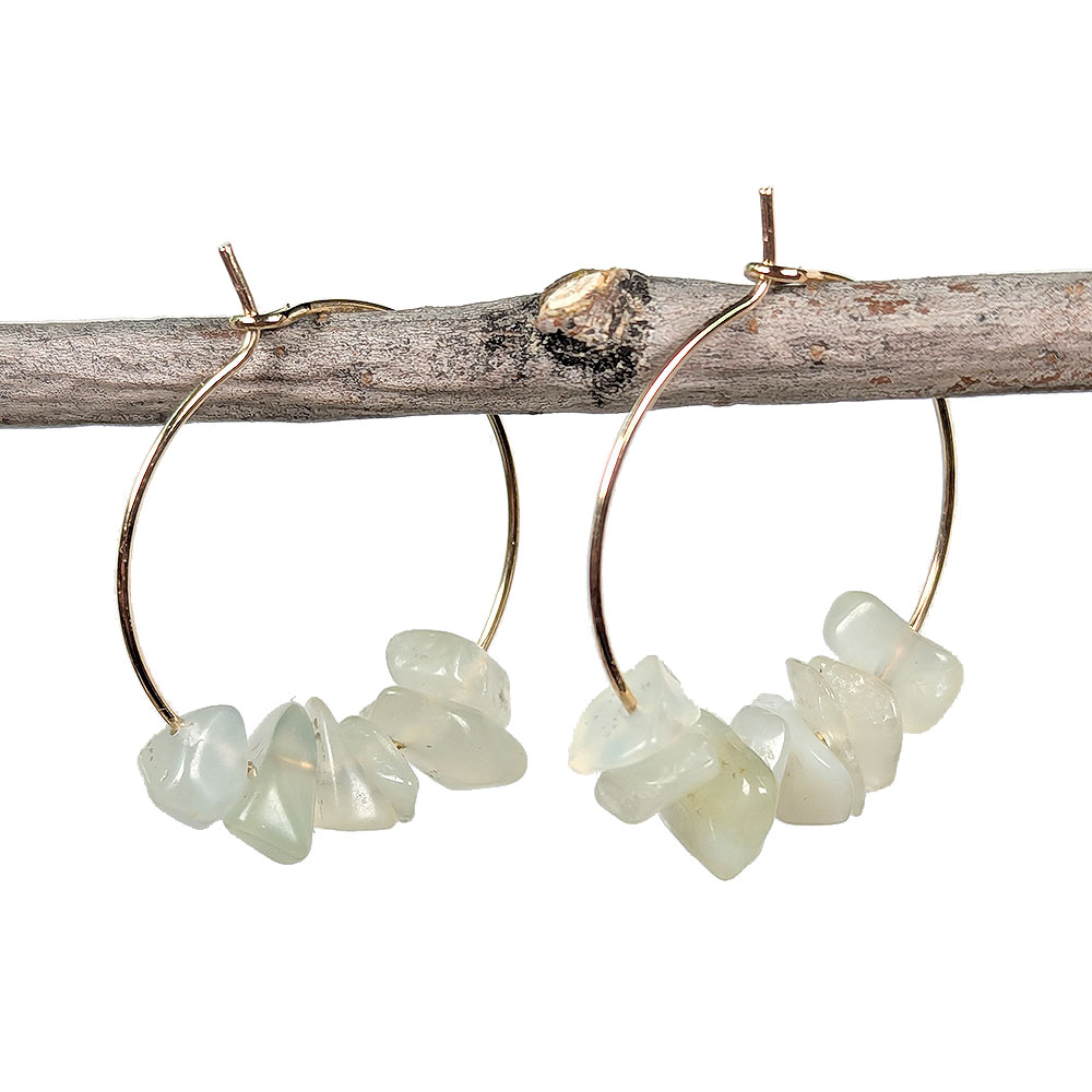 18K Real Gold Plated Stainless Steel Platinum Hoop Jade Gemstone Chips Earrings