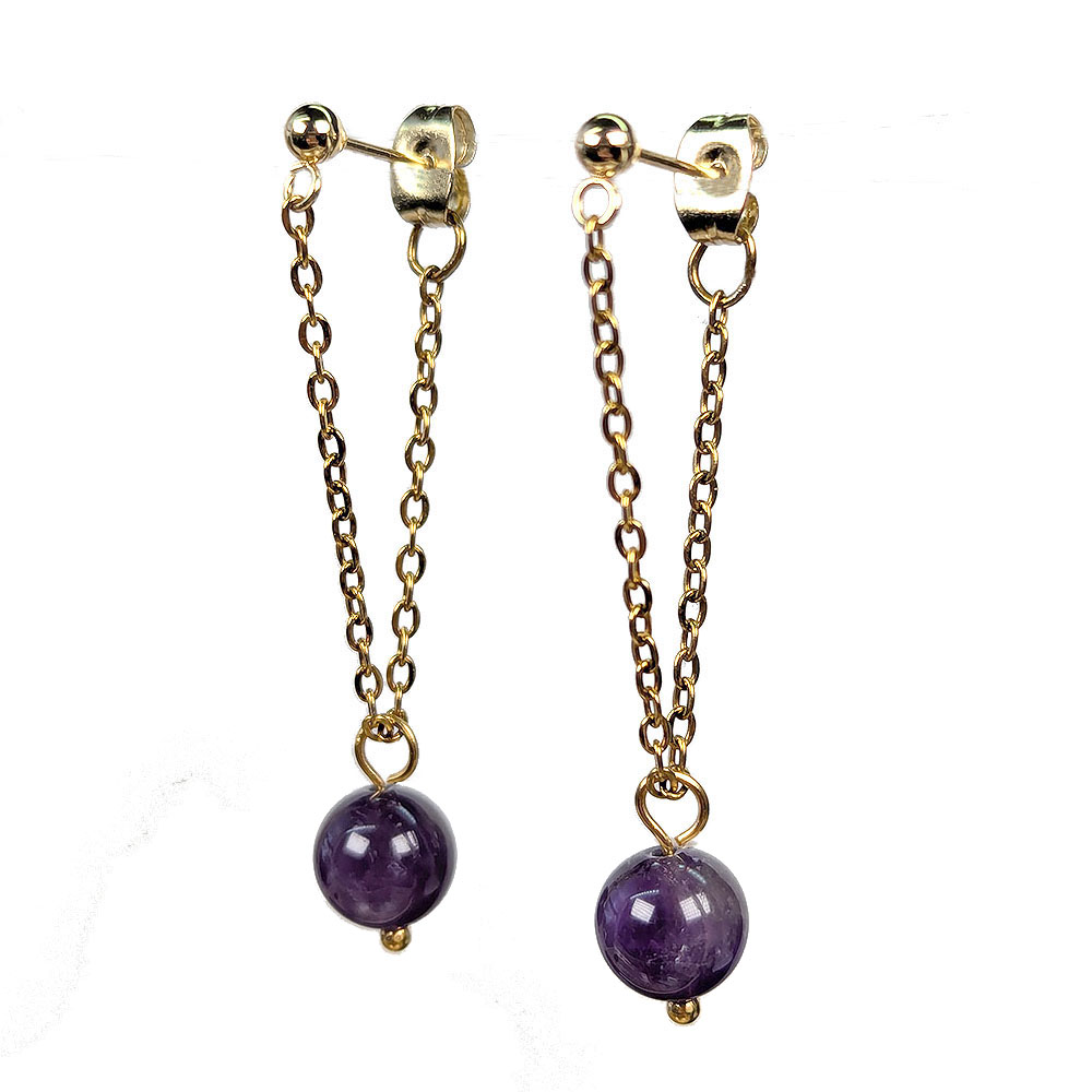 18K Real Gold Plated Stainless Steel Purple Amethyst Gemstone Tassel Earrings