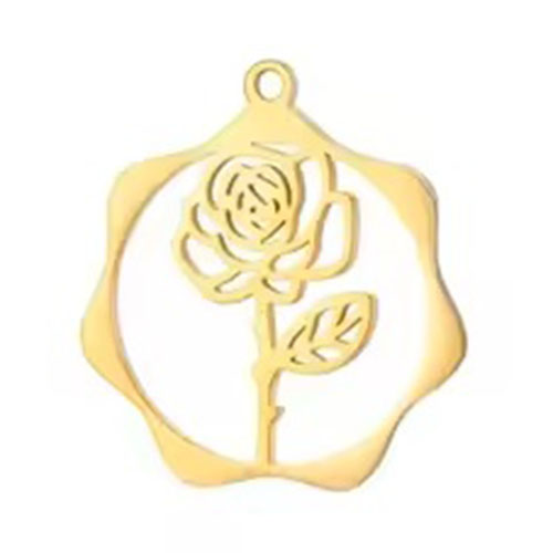 18k Real Gold Plated Stainless Steel Rose June Birthday Flower Hoop Charm
