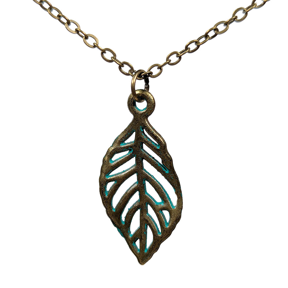 Antique Bronze Patina Hollow Crinkle Leaf Necklace