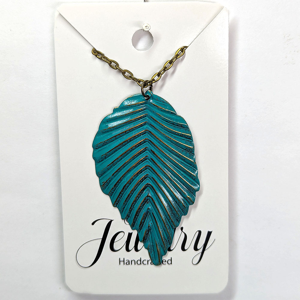 Antique Bronze Patina Leaf Pendant Necklace