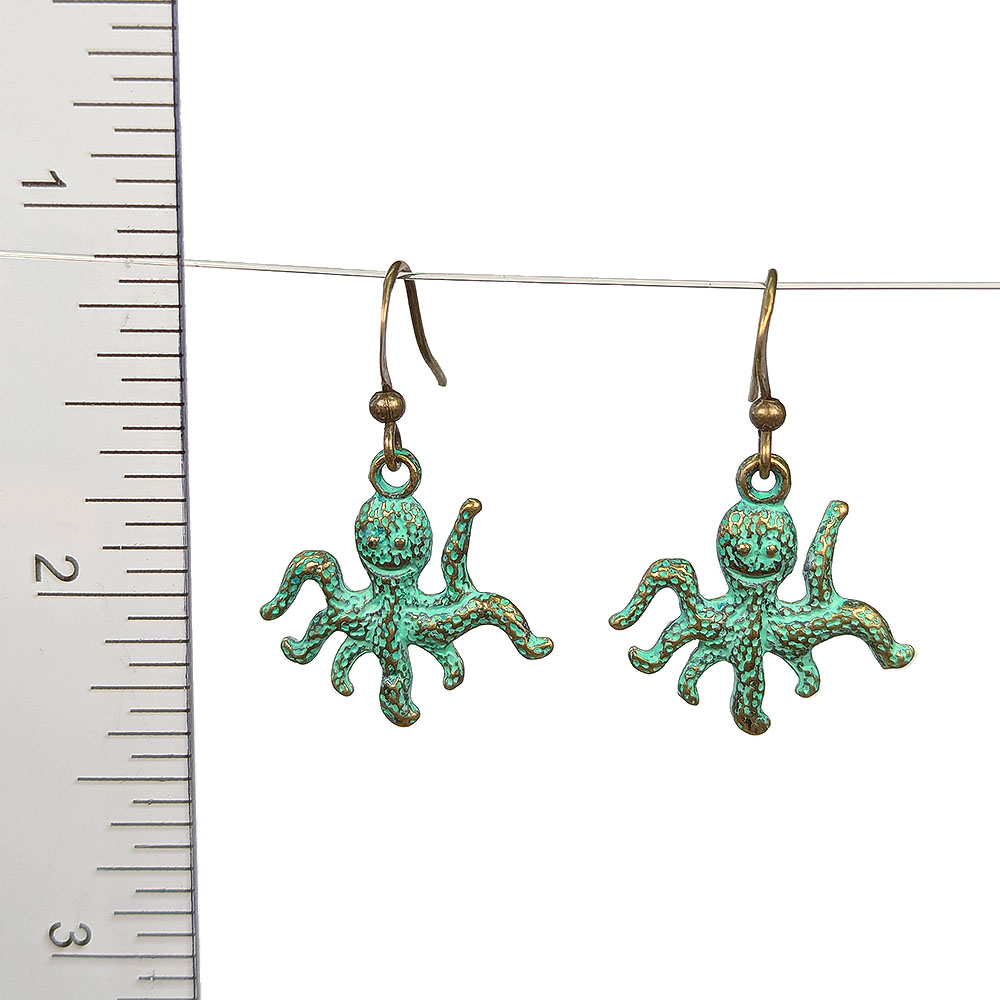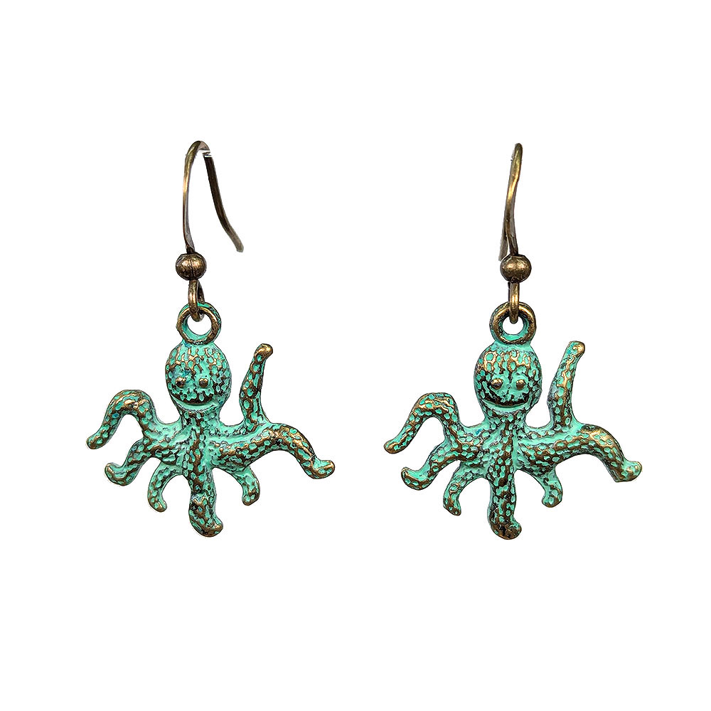 Antique Bronze Patina Smiling Octopus Earrings