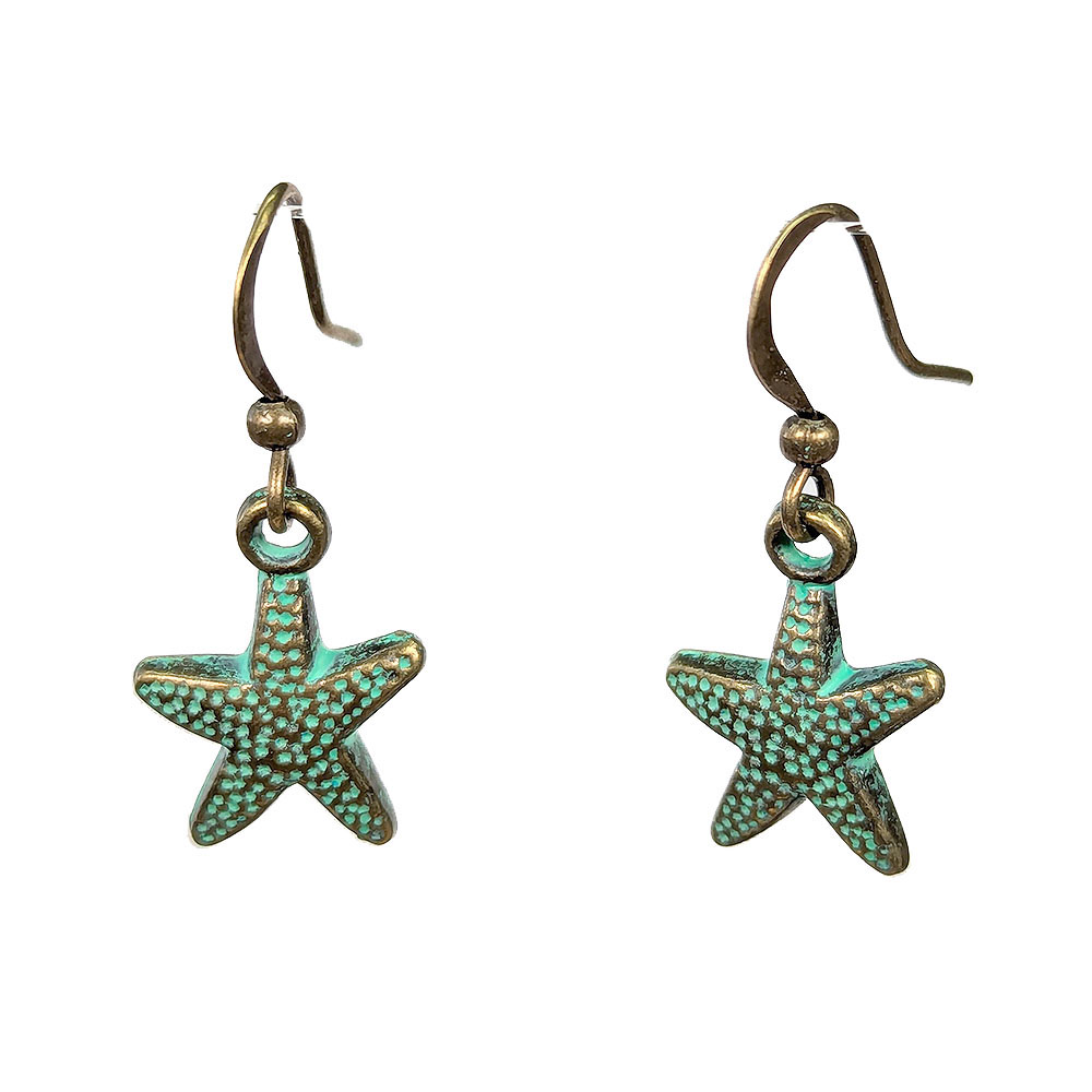 Antique Bronze Patina Starfish Earrings