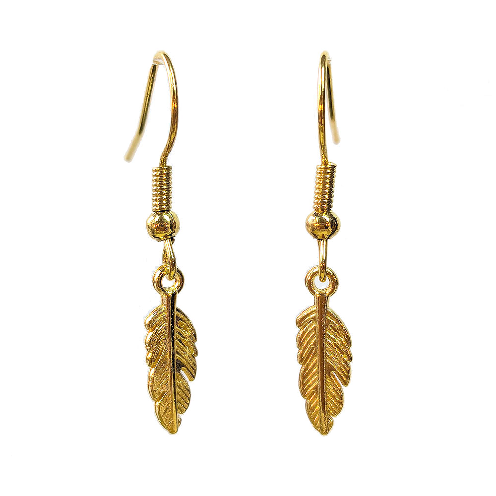 Antique Gold Tiny Feather Charm Earrings