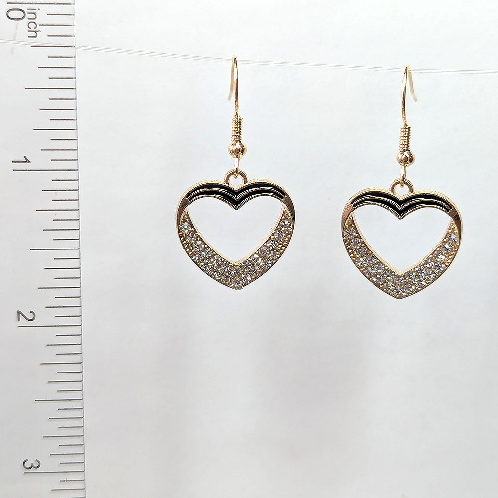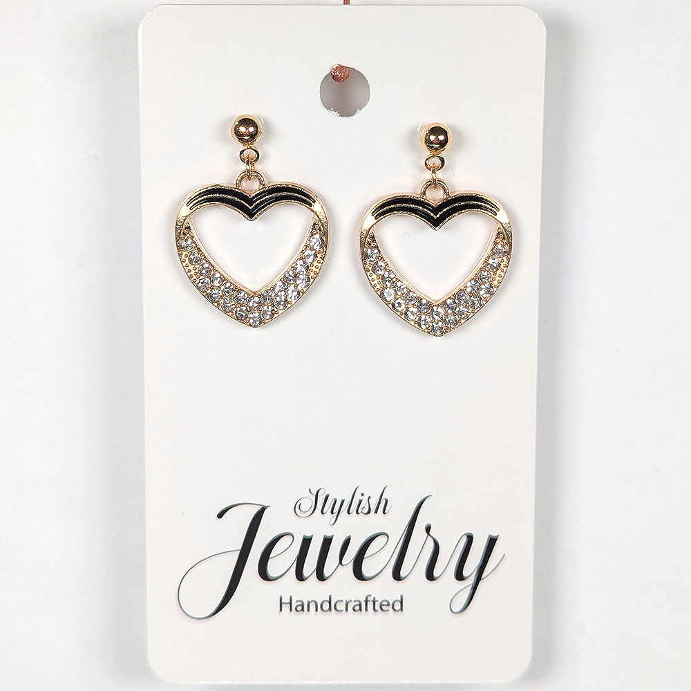 Black Gold Clear Rhinestone Hollow Heart Earrings
