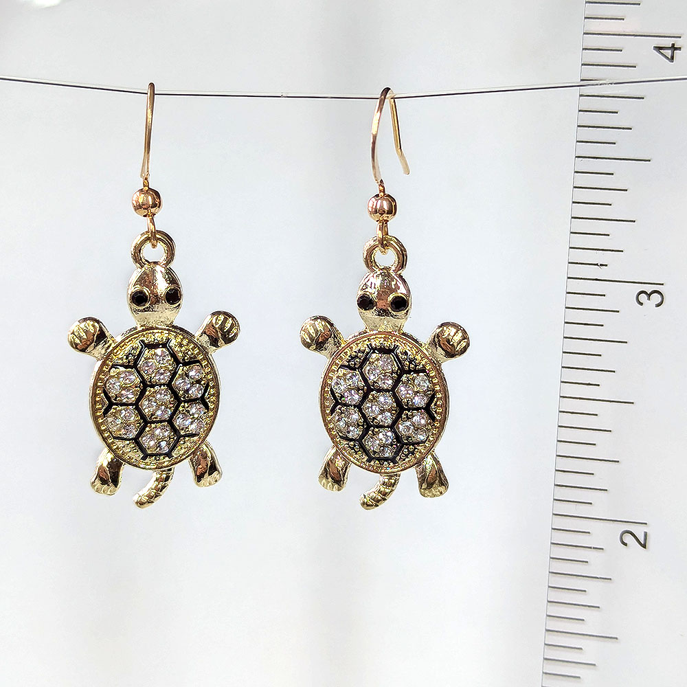 Black Gold Clear Rhinestone Turtle Earrings