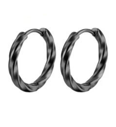Black Stainless Steel Twist Huggie Hoop Earrings