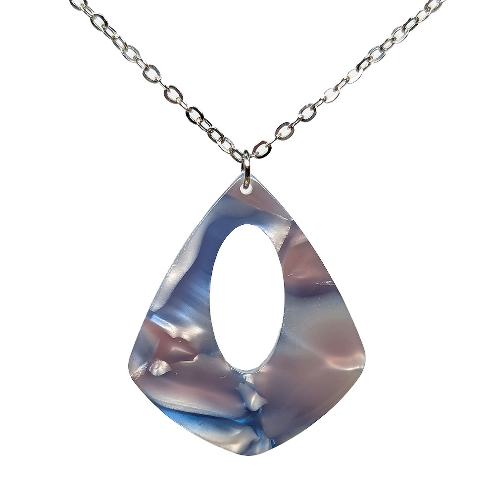 Blue Pink Purple Black Diamond Teardrop Resin Acrylic Necklace