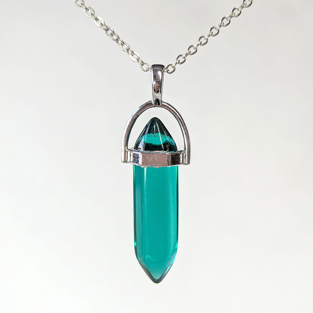 Clear Emerald Green Glass Hexagonal Pointed Pendant Necklace