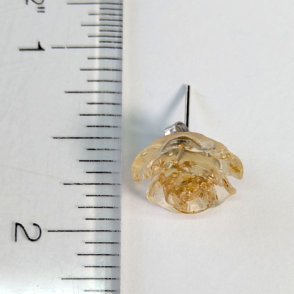 Clear Flower Gold Leaf Resin Stud Post Earrings