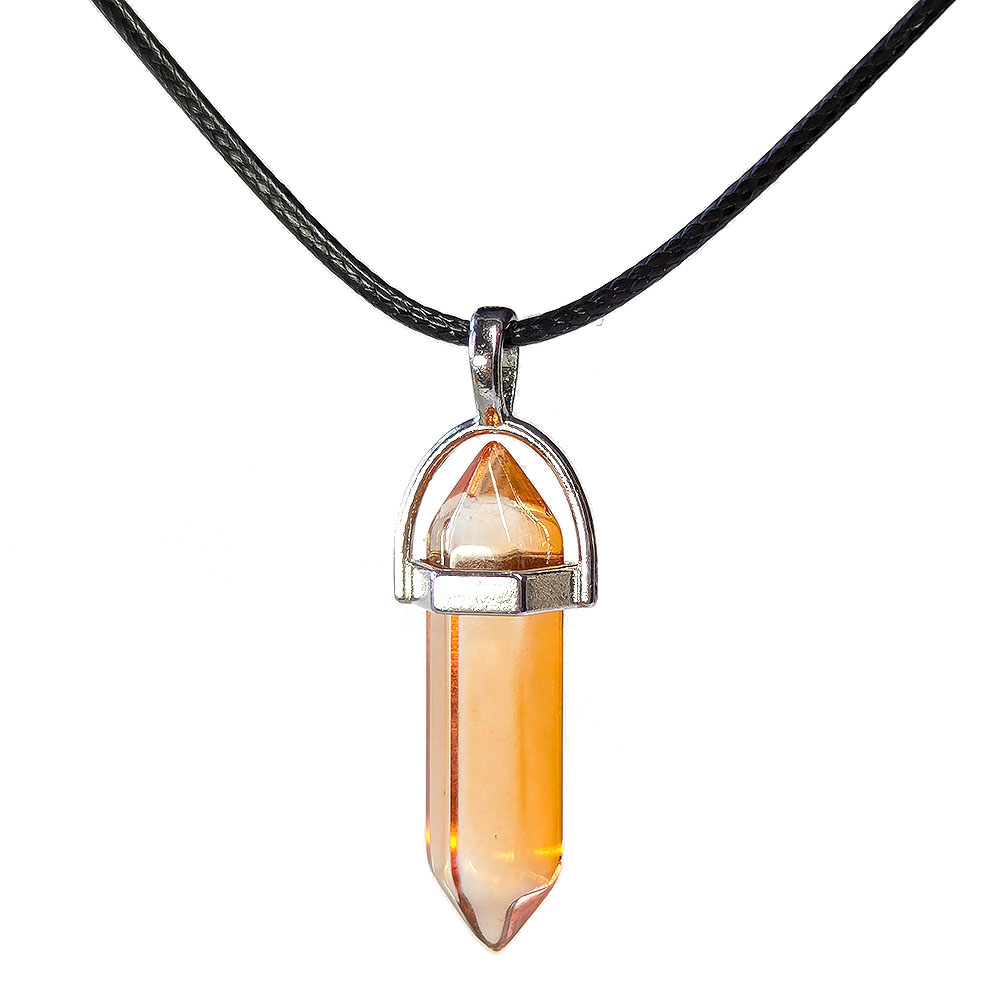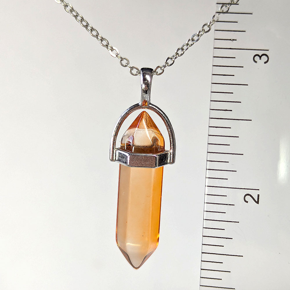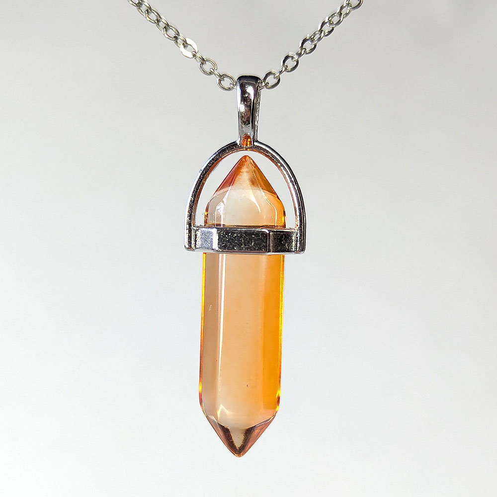 Clear Orange Glass Hexagonal Pointed Pendant Necklace