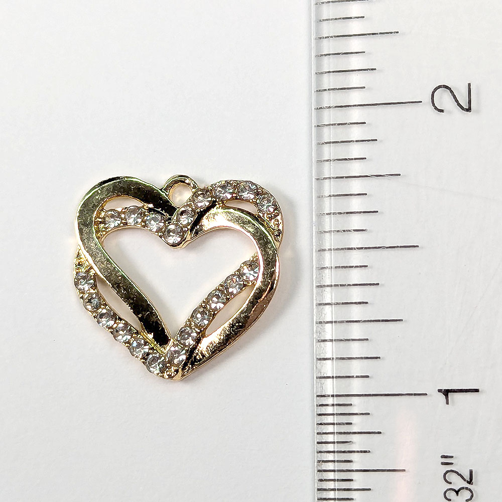 Clear Rhinestone Hollow Double Heart Charm Gold
