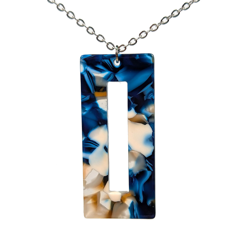 Colorful Rainbow Blue Rectangle Resin Acrylic Necklace