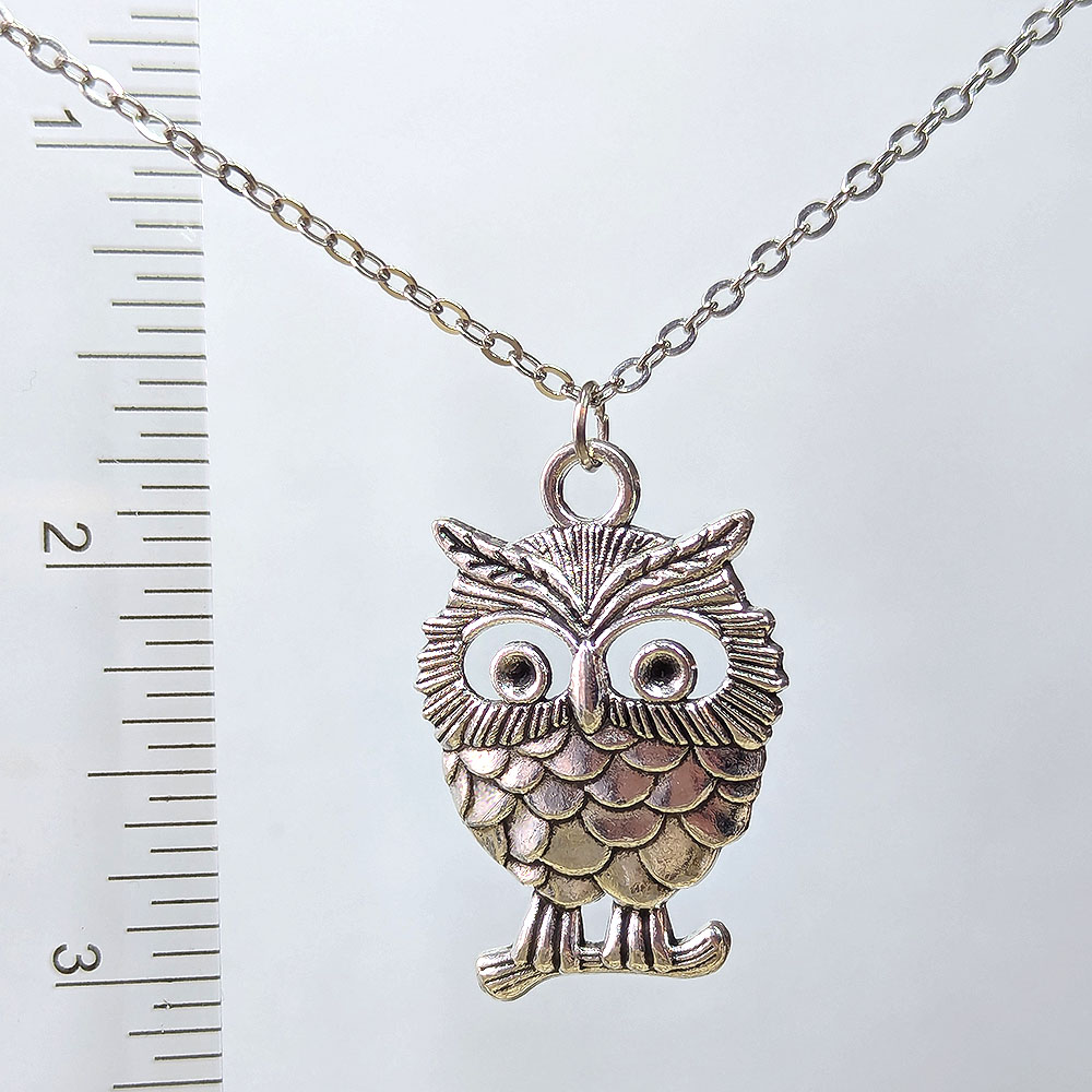 Cute Medium Antique Silver Owl Bird Hollow Eyes Necklace