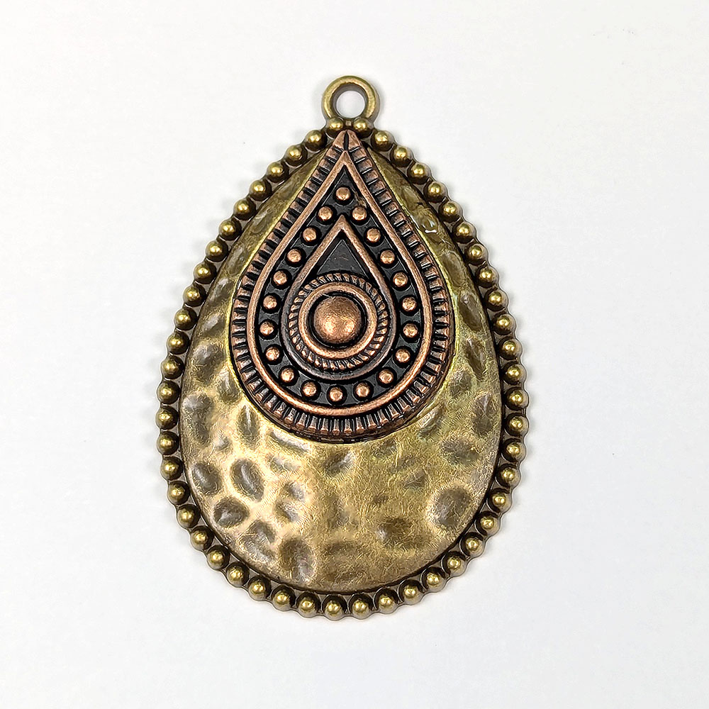 Decorative Double Hammered Teardrop Pendant Antique Bronze