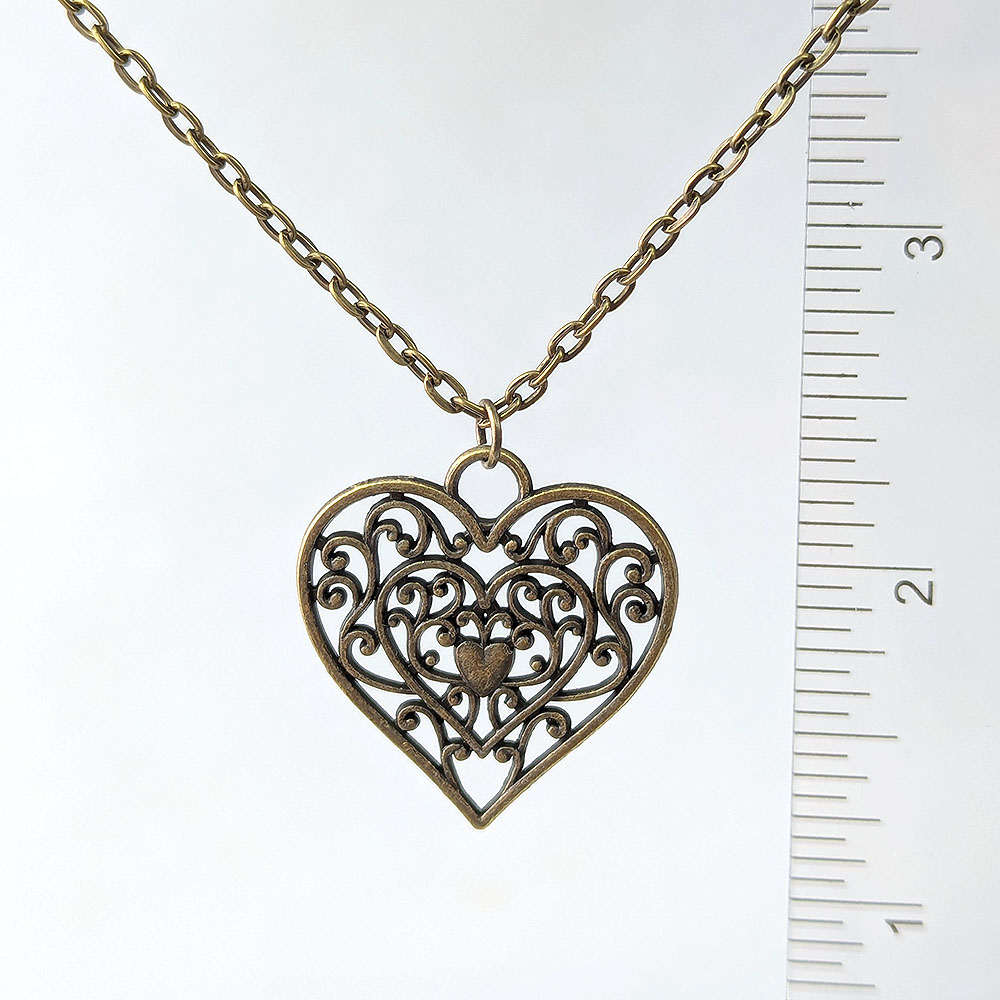 Decorative Hollow Cutout Heart Antique Bronze Necklace