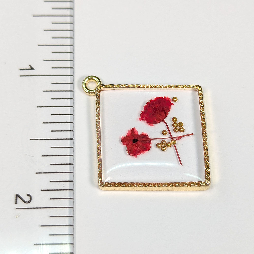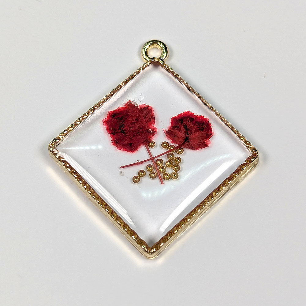 Diamond Real Red Flowers Resin Gold Balls Pendant