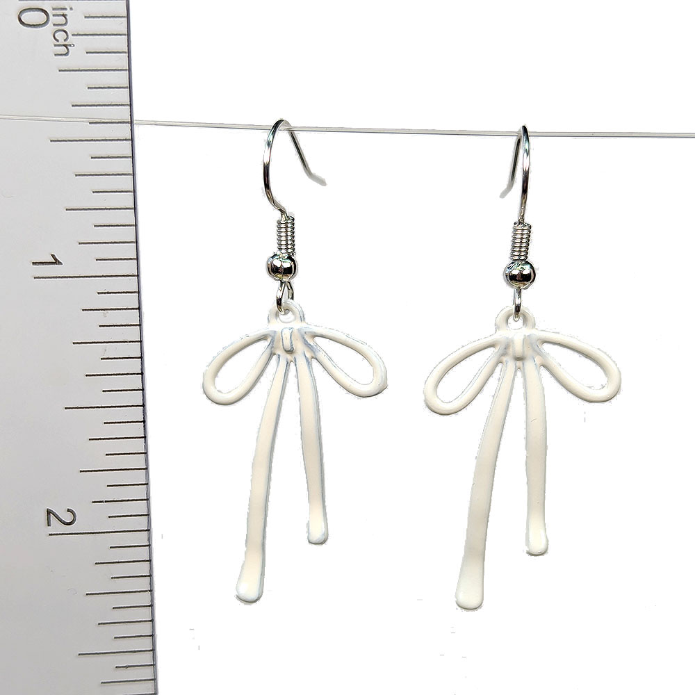 Double-Sided Bow Pendant White Earrings