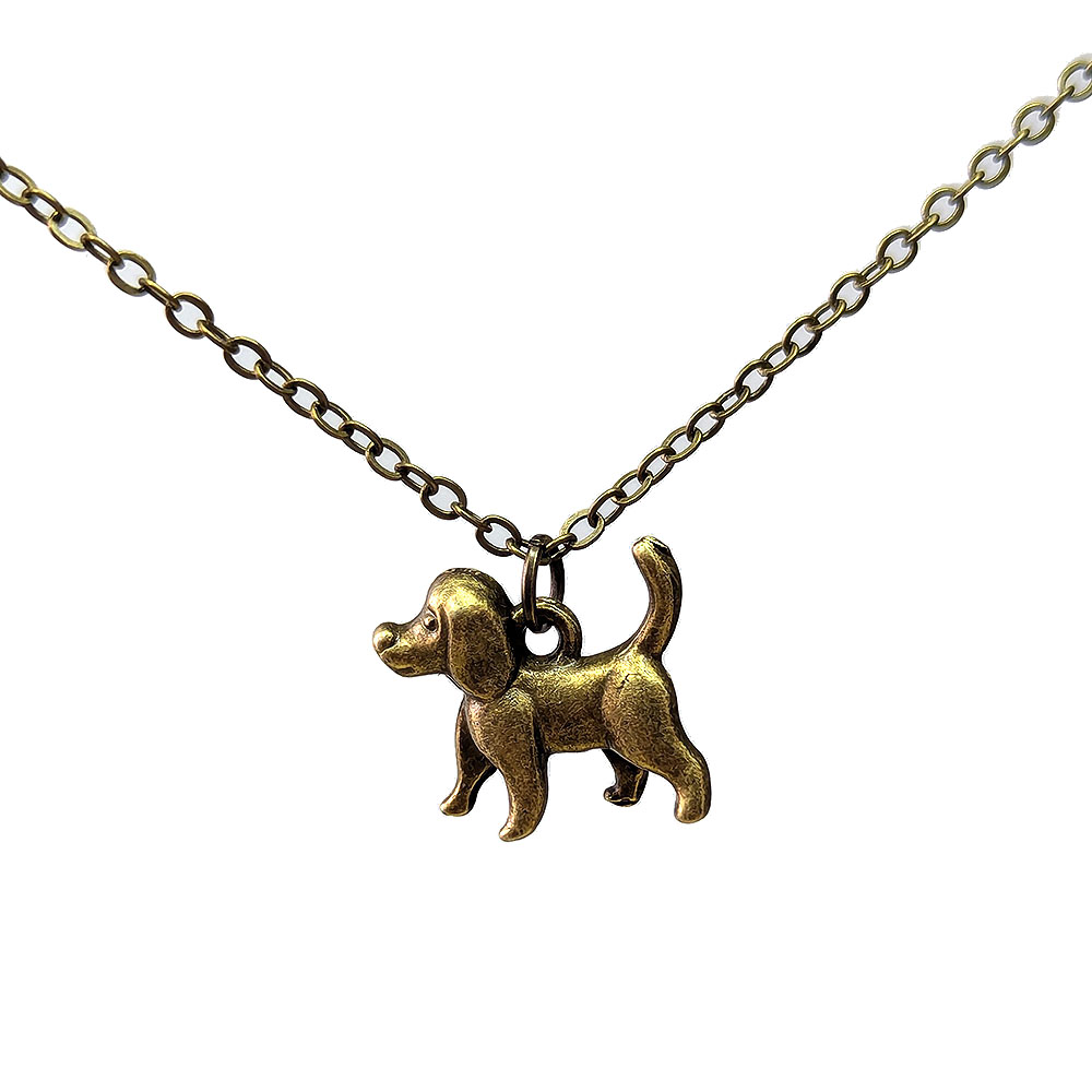 Double Sided Cute Dog Charm Antique Bronze Necklace