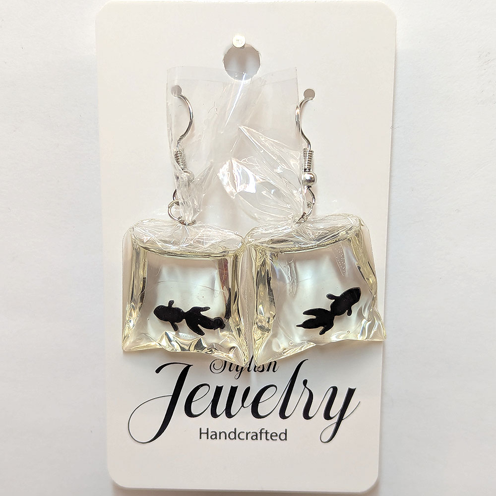 Fish in a Bag Black Goldfish Fish Resin Earrings