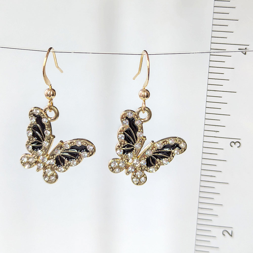 Gold and Black Angle Butterfly Rhinestones Earrings
