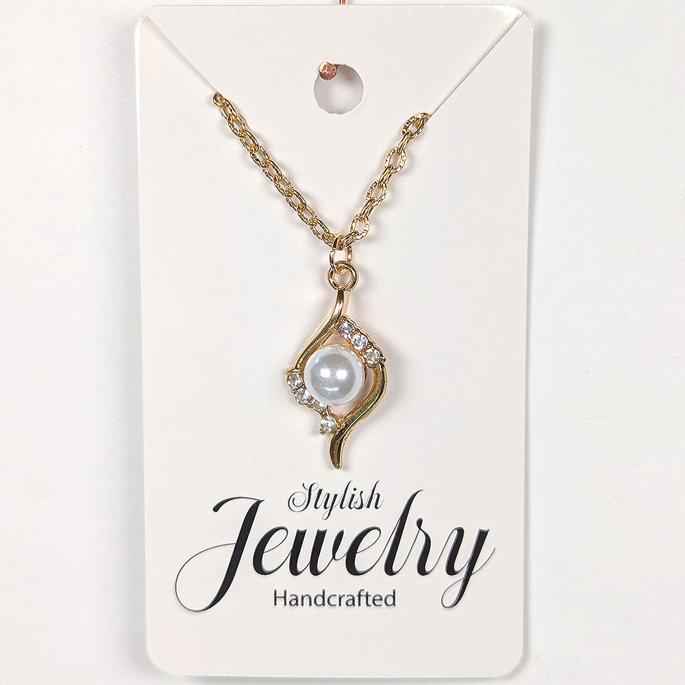 Gold Clear Swirl Rhinestone Diamond Pearl Necklace