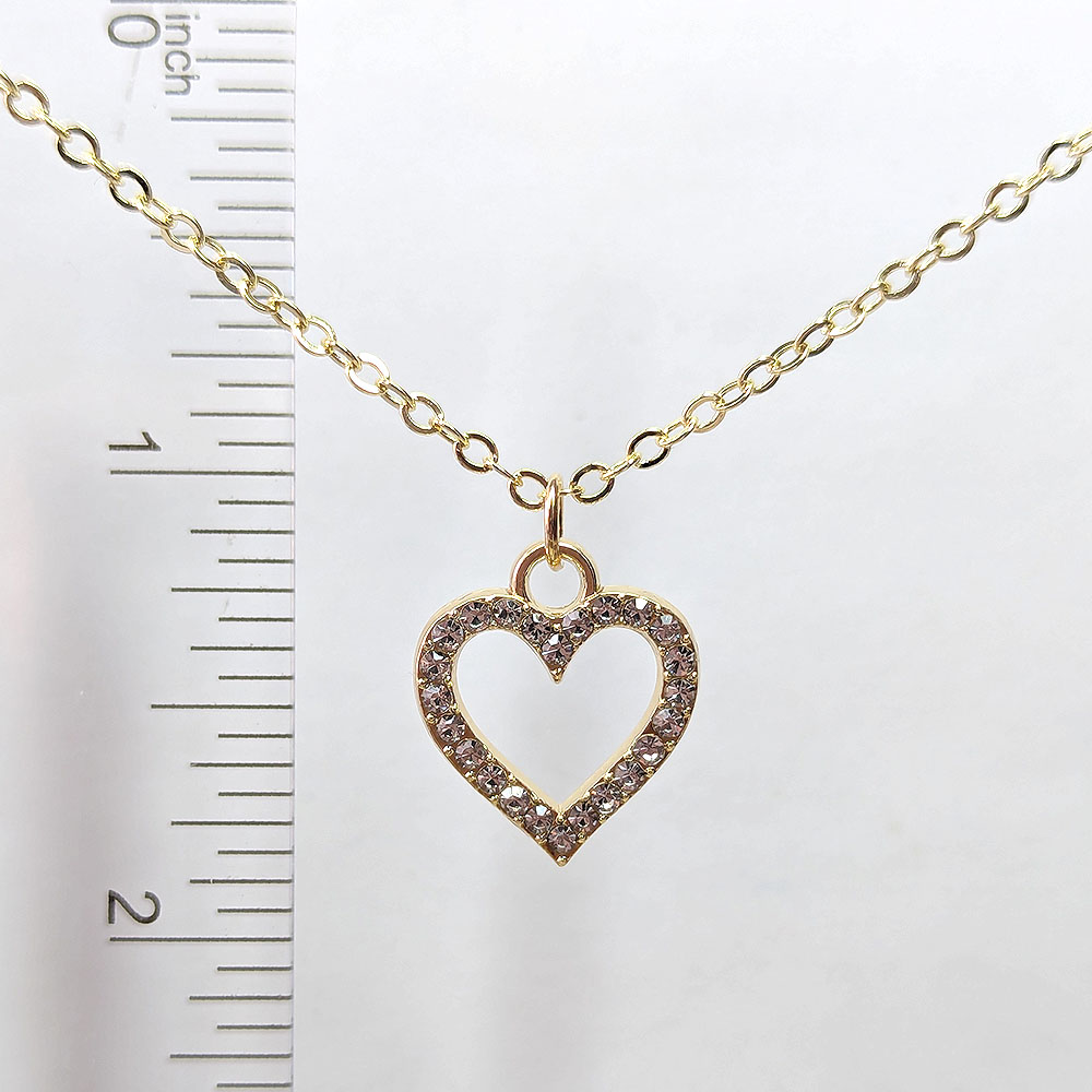 Gold Hollow Heart Rhinestones Necklace