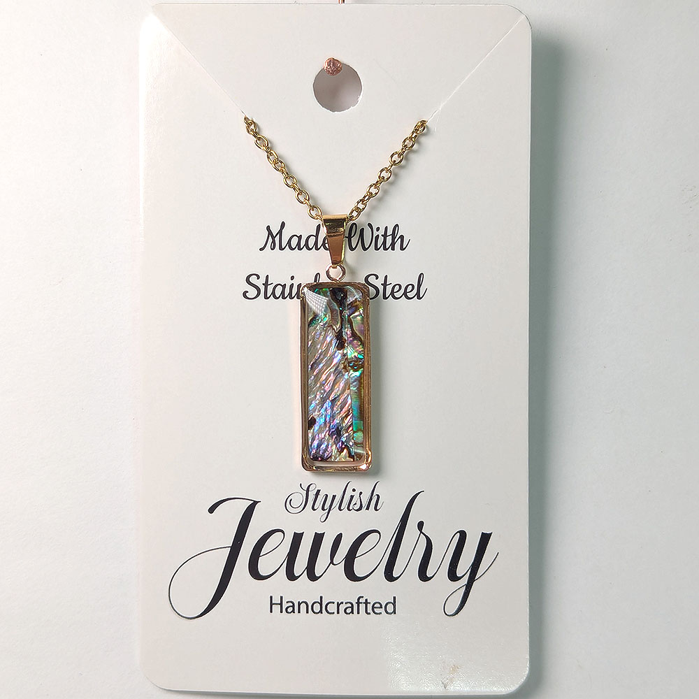 Gold Rectangle Abalone Resin Shell Stainless Steel Necklace