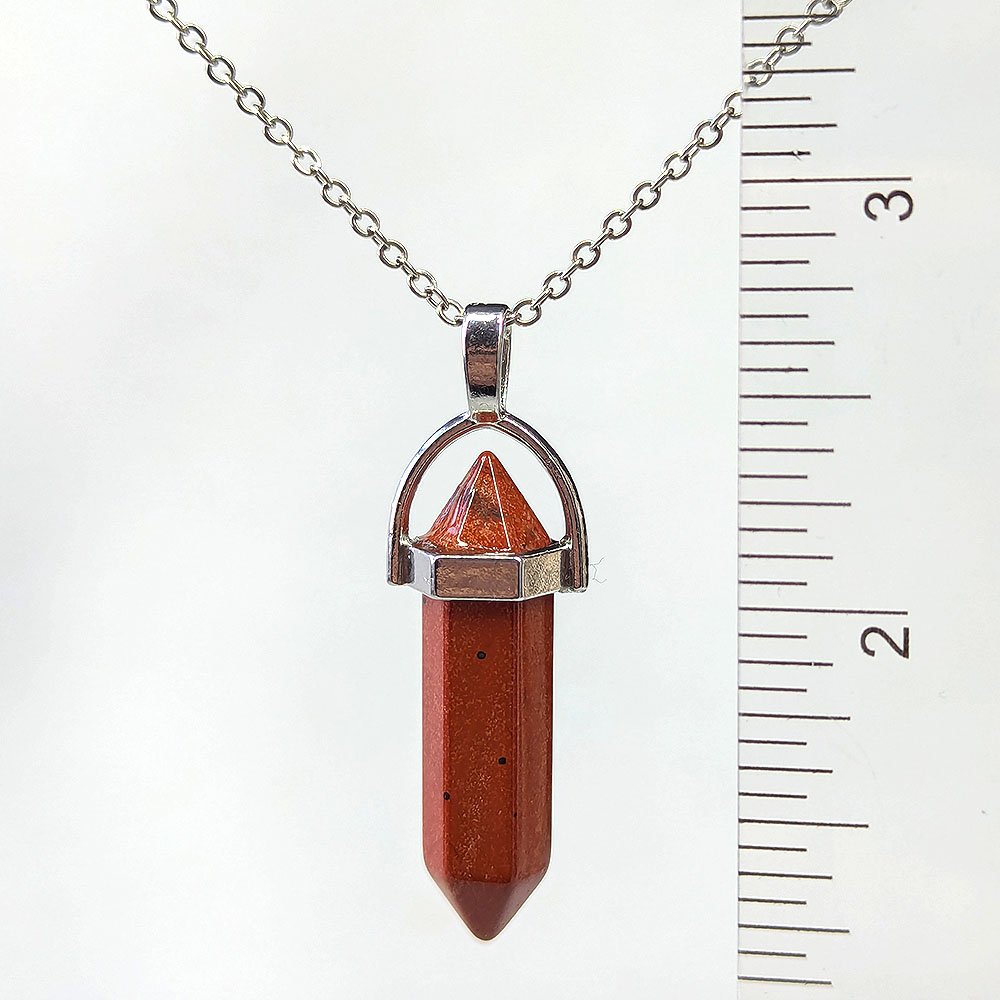 Red Goldstone Gemstone Hexagonal Pointed Pendant Necklace