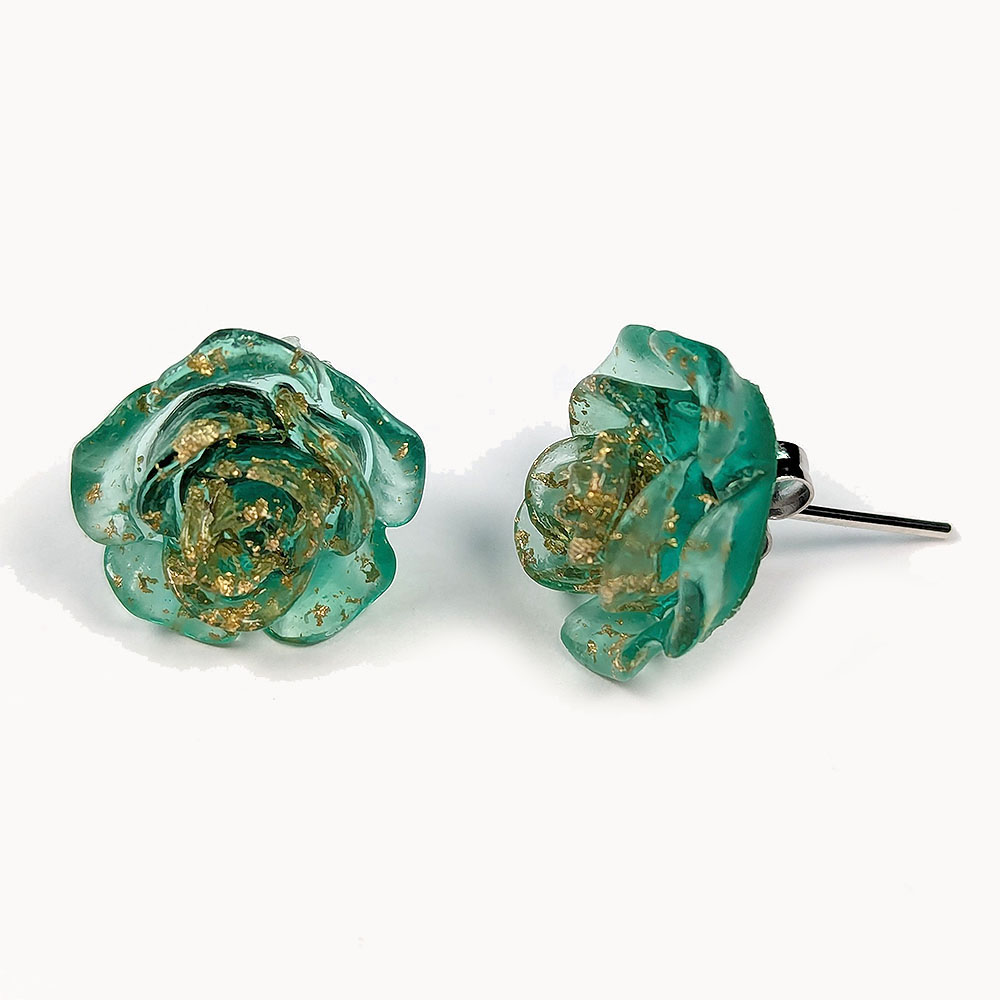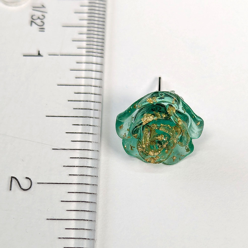 Green Flower Gold Leaf Resin Stud Post Earrings