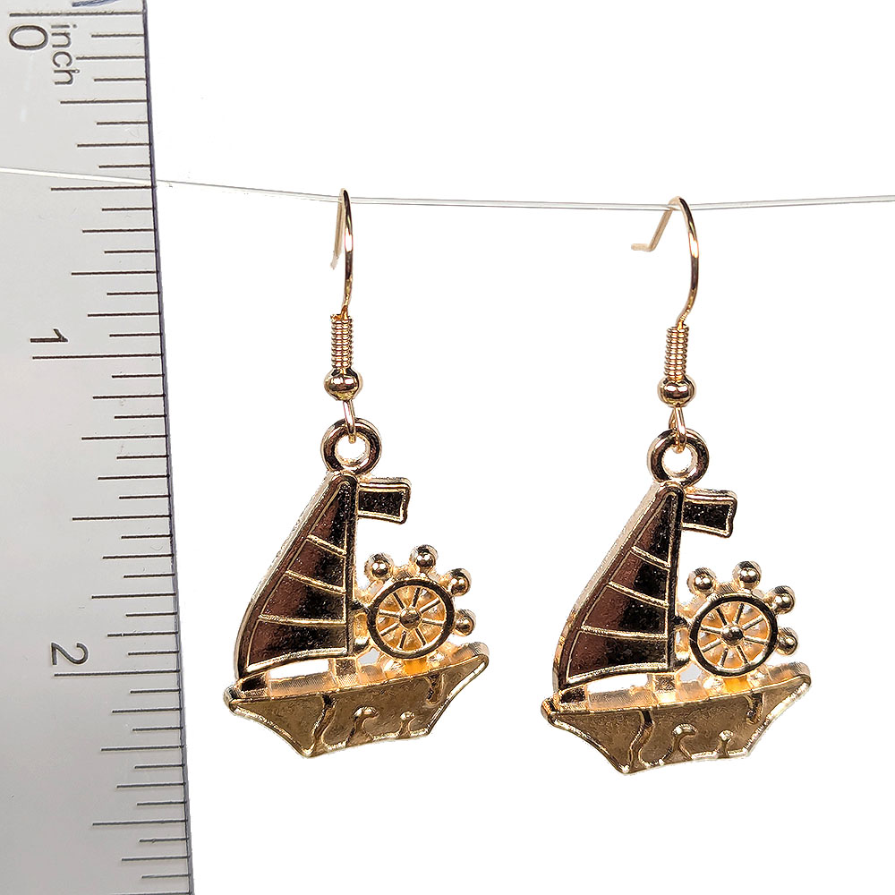KC Gold Nautical Sail Boat With Wheel Earrings