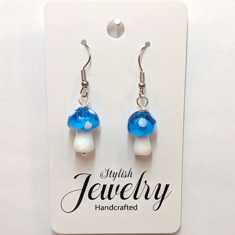 Lampwork Glass Blue Mushroom Silver Earrings