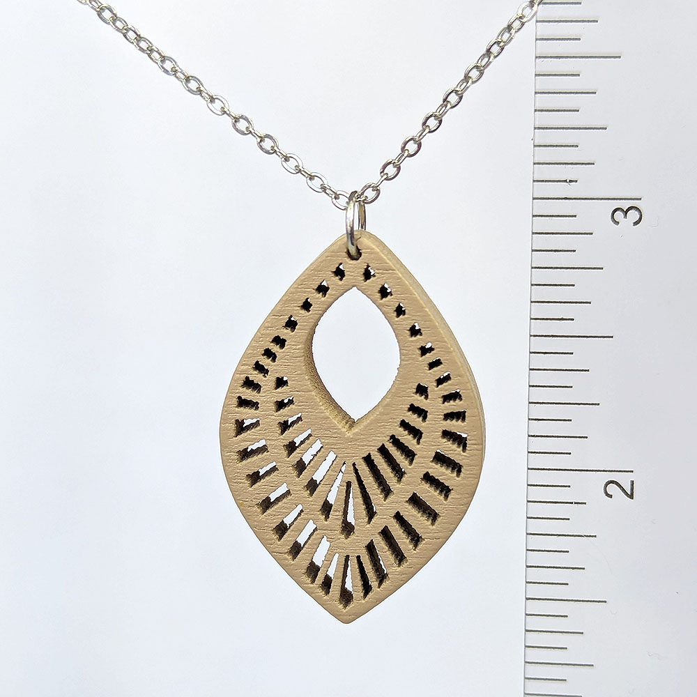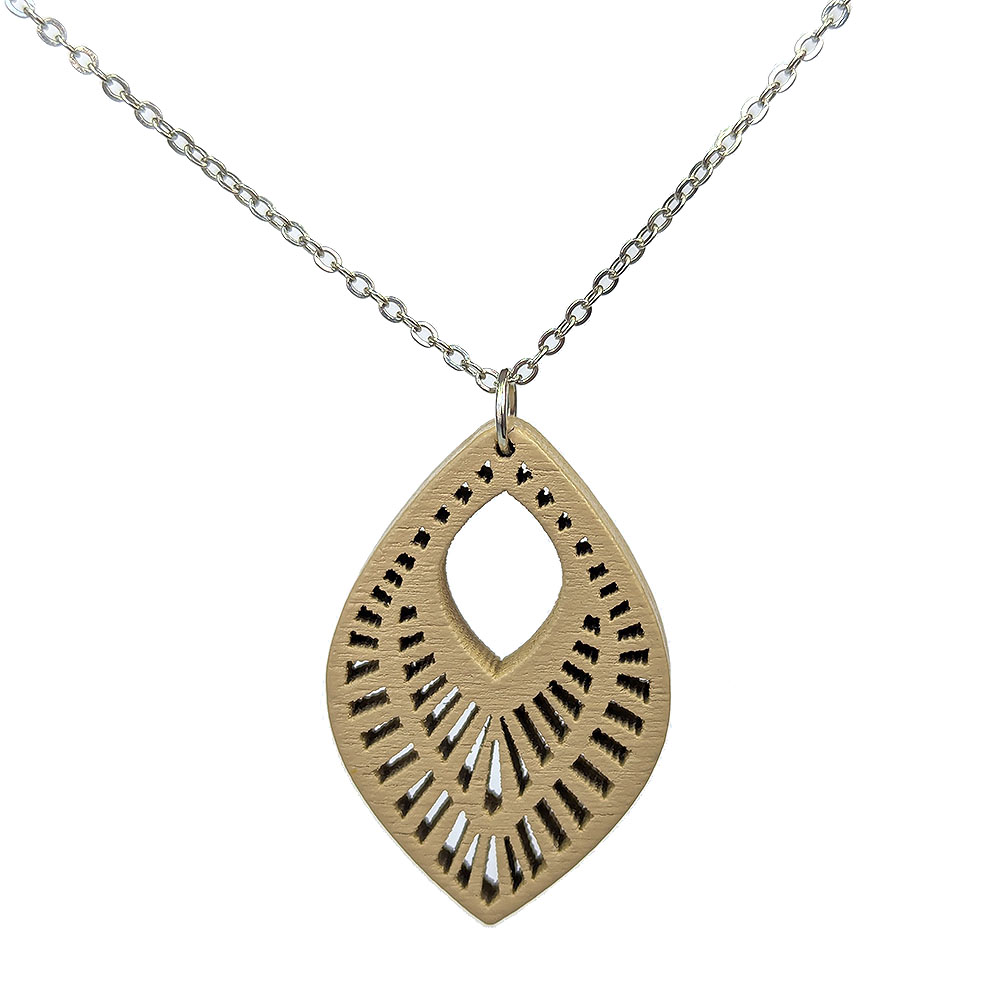Large Decorative Diamond Wood Pendant Beige Necklace