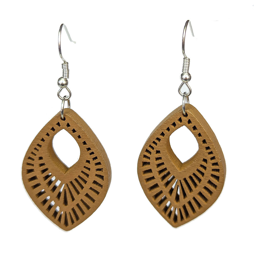 Large Decorative Diamond Wood Pendant Brown Earrings