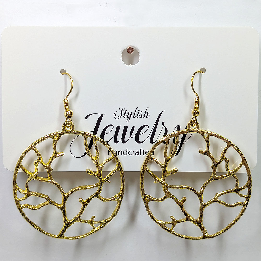 Large Gold Hoop Tree of Life Branch Earrings