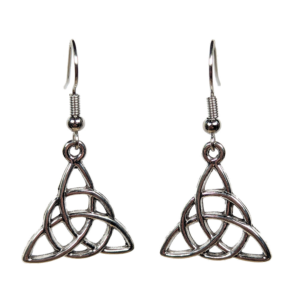 Medium Trinity Celtic Knot Triangle Antique Silver Earrings