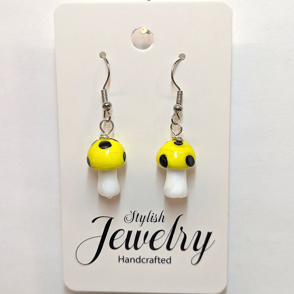 Lampwork Glass Yellow Mushroom Silver Earrings